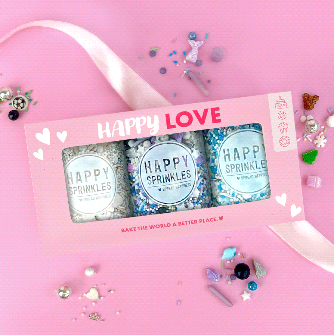 Unsere Streuselmixe sind so viel mehr als nur Streusel! Aus himmlischen Schokokugeln, Perlen mit leckerem Kekscrunch, knackigen Rods und ausgefallenen Motiven wie Herzen, Dinos, Wolken und vieles mehr entstehen bei Happy Sprinkles einzigartige Streuselmixe für jeden Anlass! Probier es aus und lass' dich verstreuseln - wir können gar nicht genug von unseren Mixen bekommen!