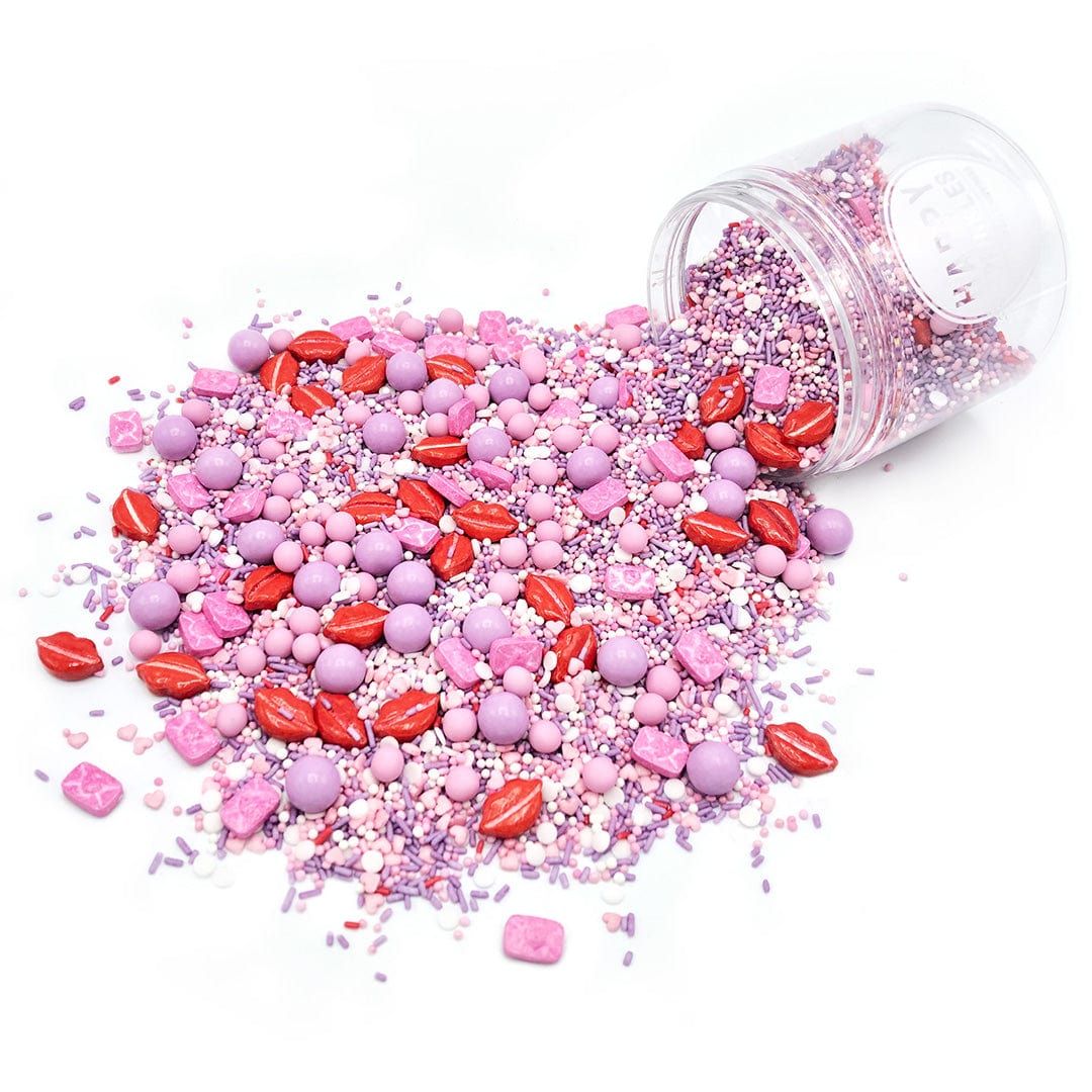 Die rosa und weißen Zuckerperlen, mit den rosa und lilafarbenen Schokokugeln und den lilafarbenen Strands, zeigen, wie viel Liebe in diesem Mix steckt. Also, Liebe aus der Dose und rauf auf deine Backkreationen. Mit diesen Streuseln kein Problem - da liegt Liebe in der Luft! 💞🧁